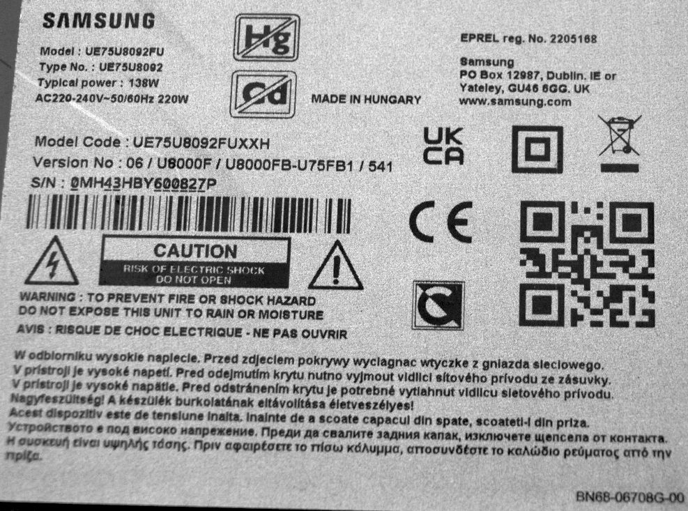 placa de baza OE din tv NOU SAMSUNG UE75U8092FUXXH Smart 4K cu ecran CY-BF075HGSV2H = JR745R3HC5K