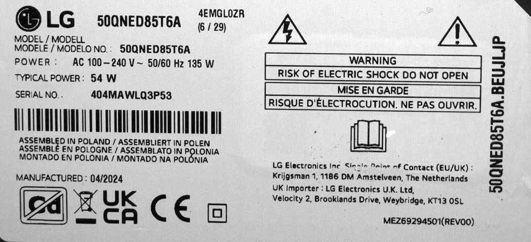 placa de baza OE din tv NOU LG 50QNED85T6A.BEUJLJP 2024 cu ecran NC500EQH-VXMH5 = V500DK5-Q02 Rev.C1 / EAD66038311 EAD66038312 EAT65193302 ETWCFMBC03 LGSBWAC97 EBR3873420