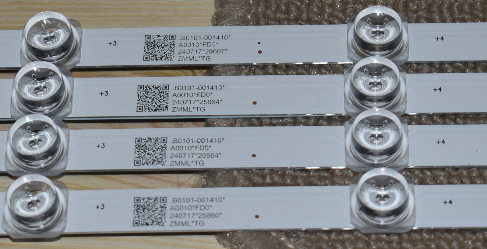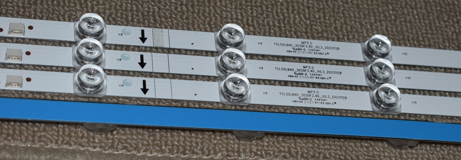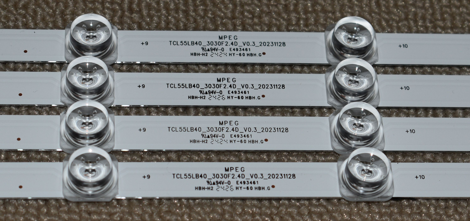 4 benzi QLED OE cu 14 led-uri fiecare recuperate din tv NOU - suport de aluminiu si banda dub luadeziva termica pe spate TCL 55C655 55C655X1 QLED cu ecran LVU550NDJL CS9W49 V3 = ST5461D18-2 V2.1