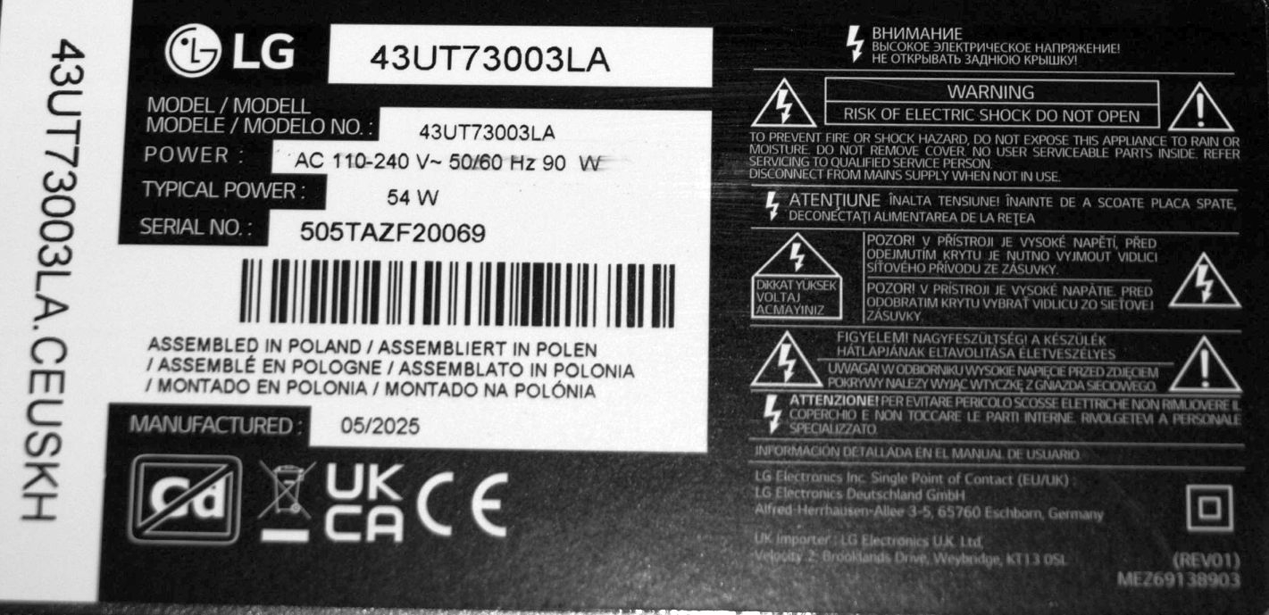 3 benzi OE cu LED-uri la 6V din tv NOU LG 43UT73003LA.CEUSKH 2025 Smart 4K cu ecran DTL8018150 LVU430H0DAE E0007 = PT430GT01-5 Ver.1.0