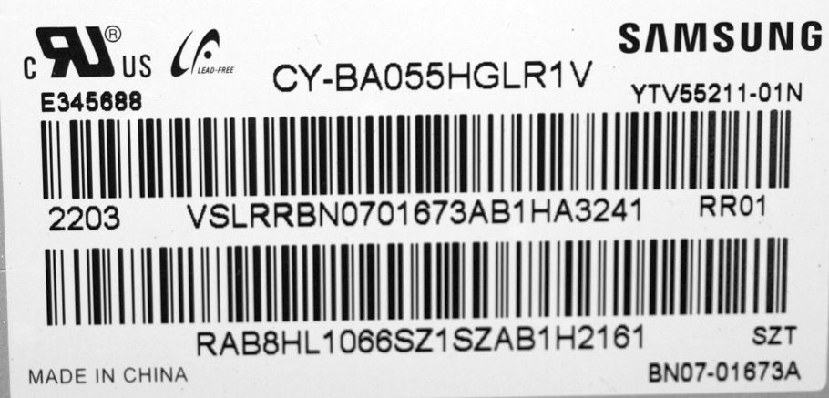 sursa alimentare pentru tv SAMSUNG UE55AU7172U-XXH cu ecran CY-BA055HGLR1V = LSF550FN15-R01